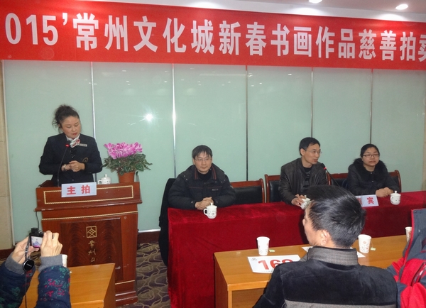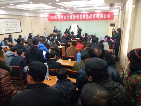 1月6日上午9点,园外园宾馆西园厅座无虚席,气氛热烈,由常州文化城主办,常州市文博鉴赏学会、常州市装饰材料行业协会、民建天宁基层委员会等单位协办,常州市正德拍卖公司主拍的“瑞羊迎春 开门接福”新春书画作品慈善拍卖会隆重拉开帷幕。