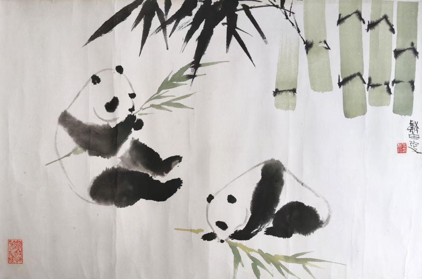 史秋鹜《熊猫》原裱镜片! |