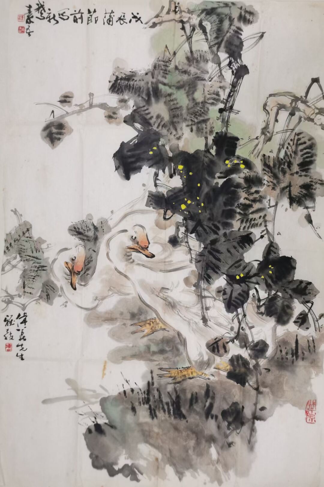 【著名花鸟画名家*赵素吾先生】收藏级精品《双鹅图》!软片,尺寸84✘56,品相如图!