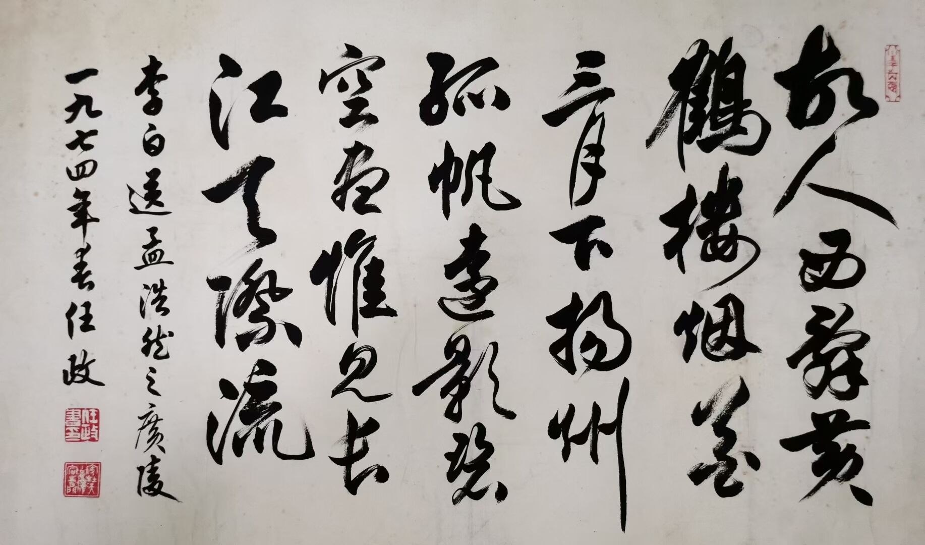 【海上书法名家★任政先生】精品之作《送孟浩然之广陵》,尺寸56✘35,原裱镜片,品相如图!