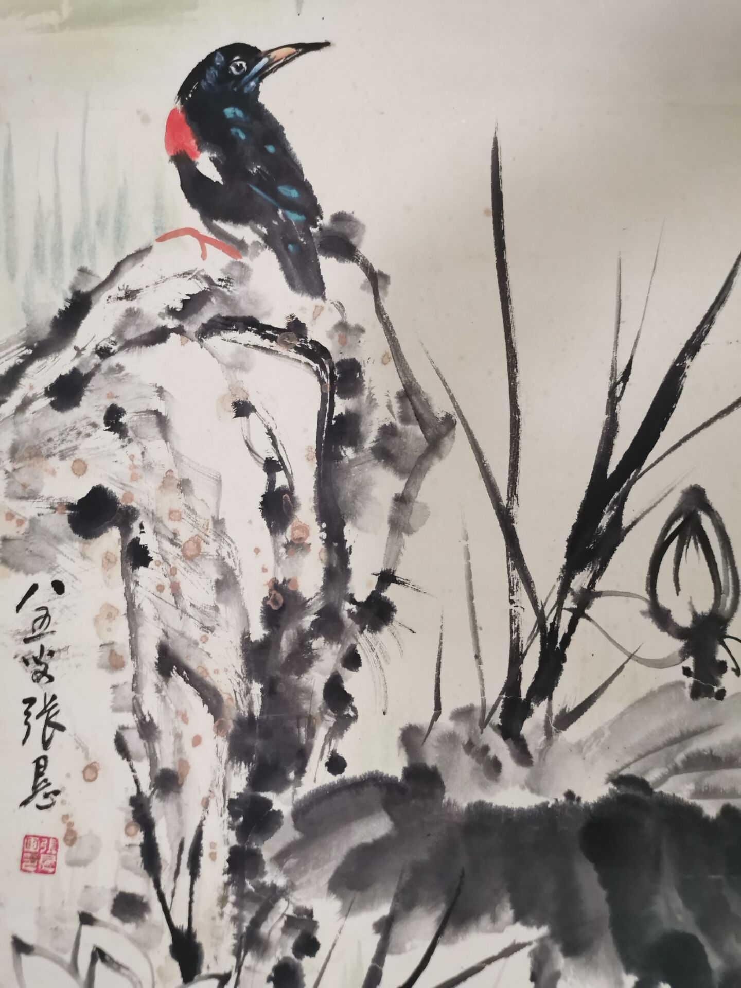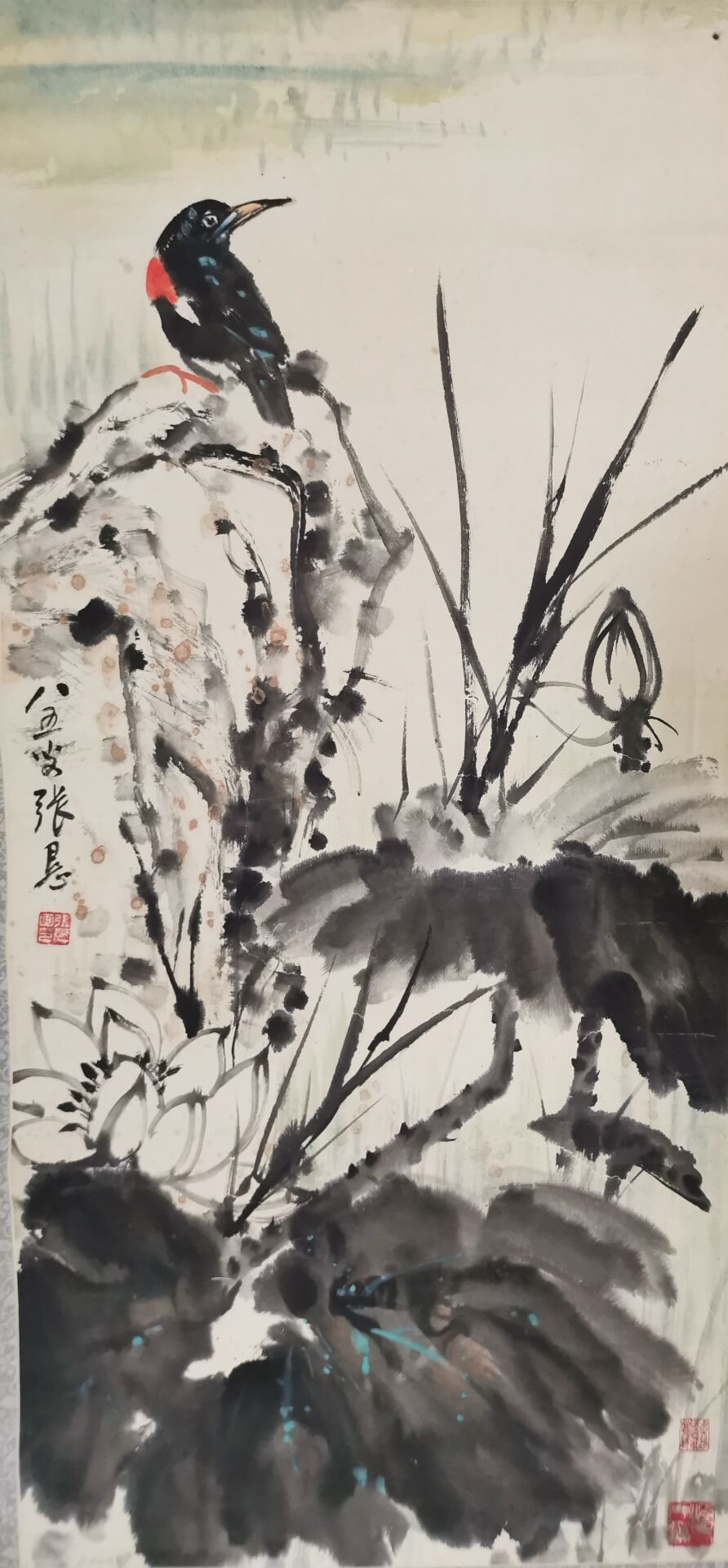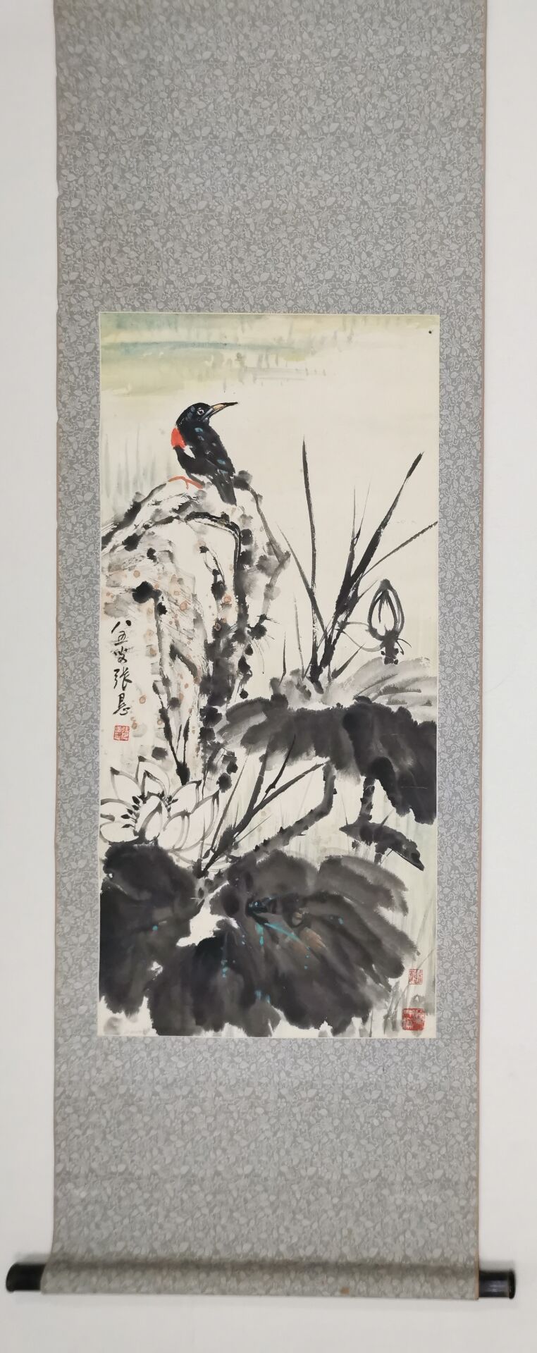 张恳《荷花翠鸟》原裱立轴 |