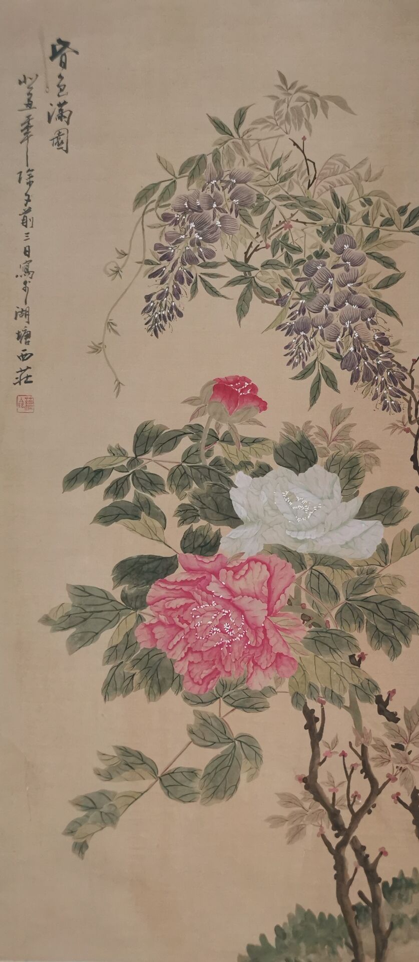 季蕴玲《春色满园》原裱立轴,绢本! |