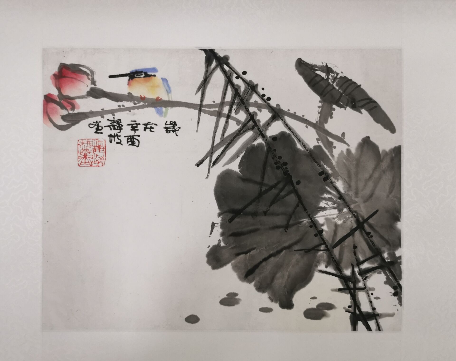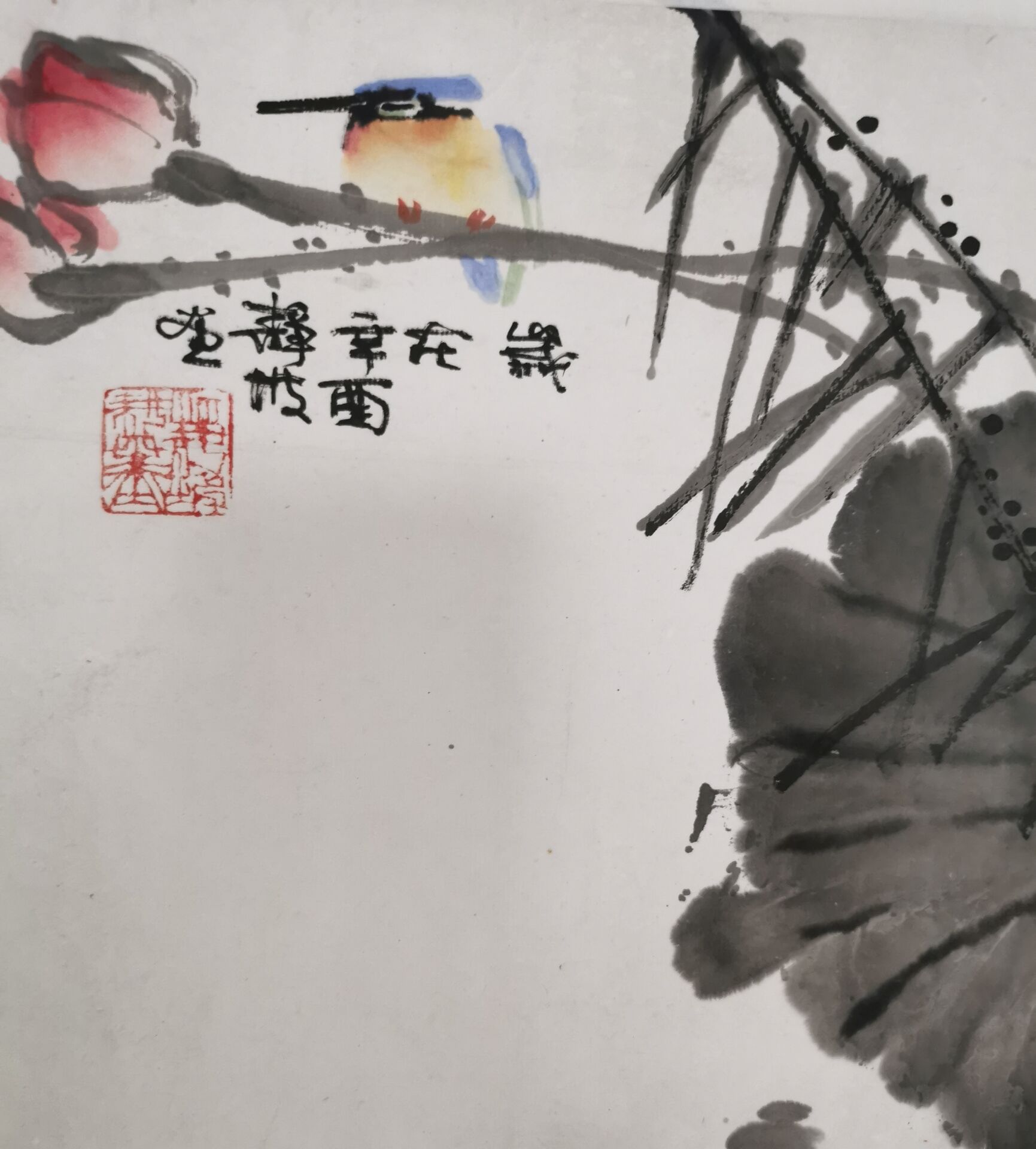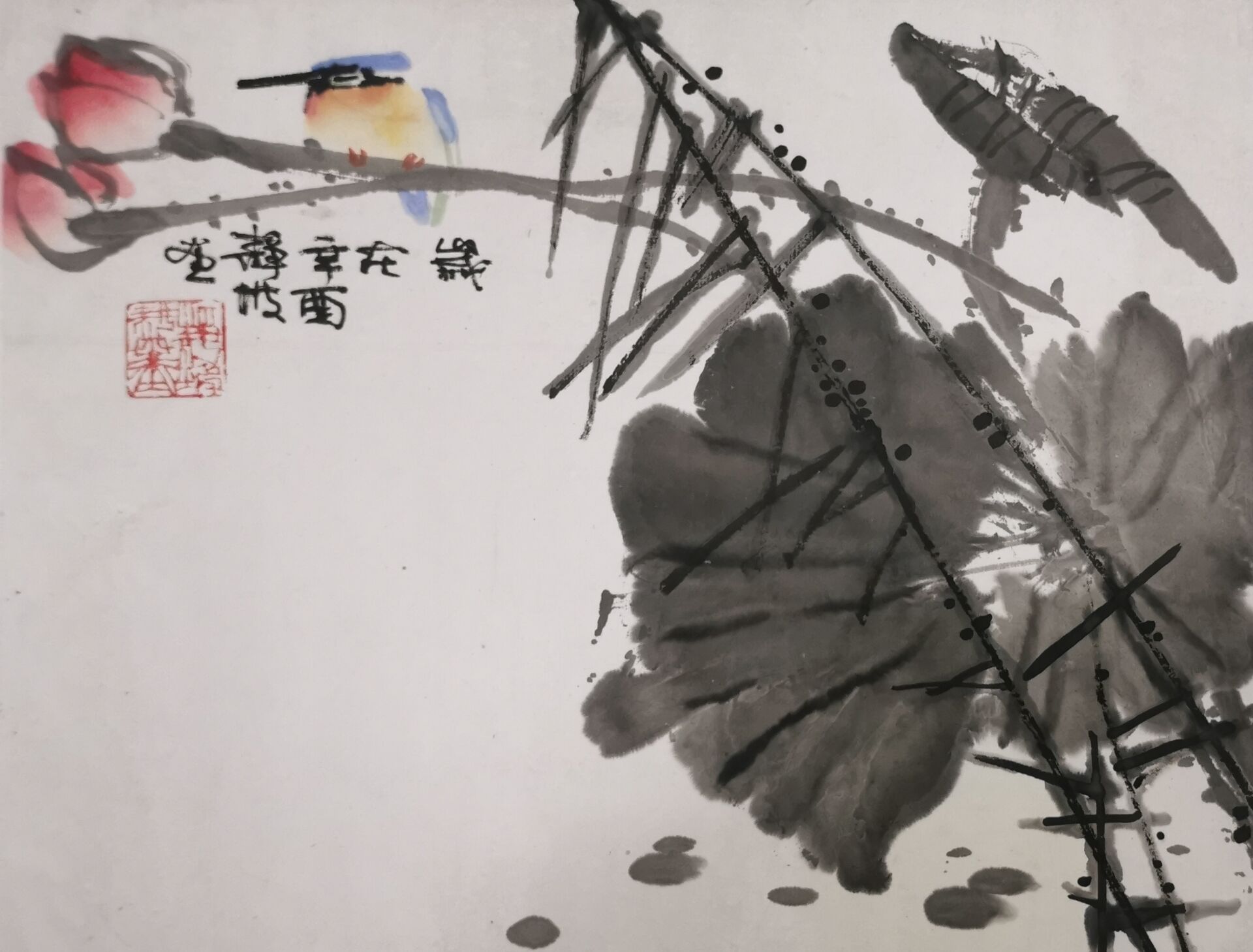 莫静坡《荷花翠鸟》镜片! |