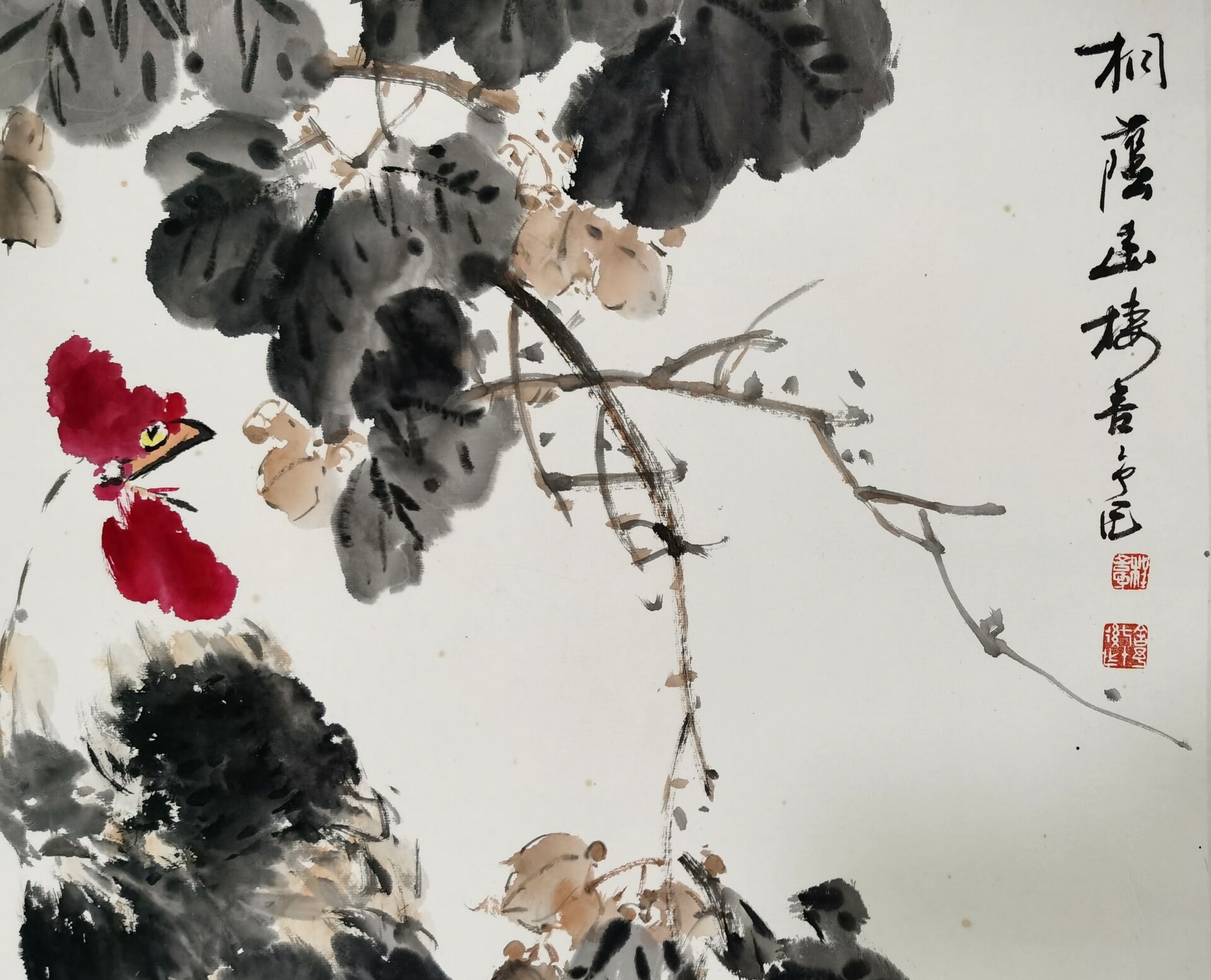 程舍予《公鸡》,原裱镜片 |
