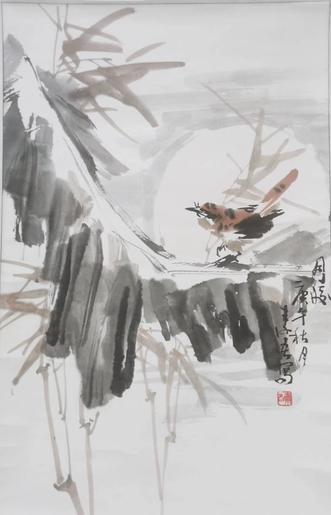 编号 3608 作 者 赵素吾 字画名称 赵素吾《花鸟》原裱立轴