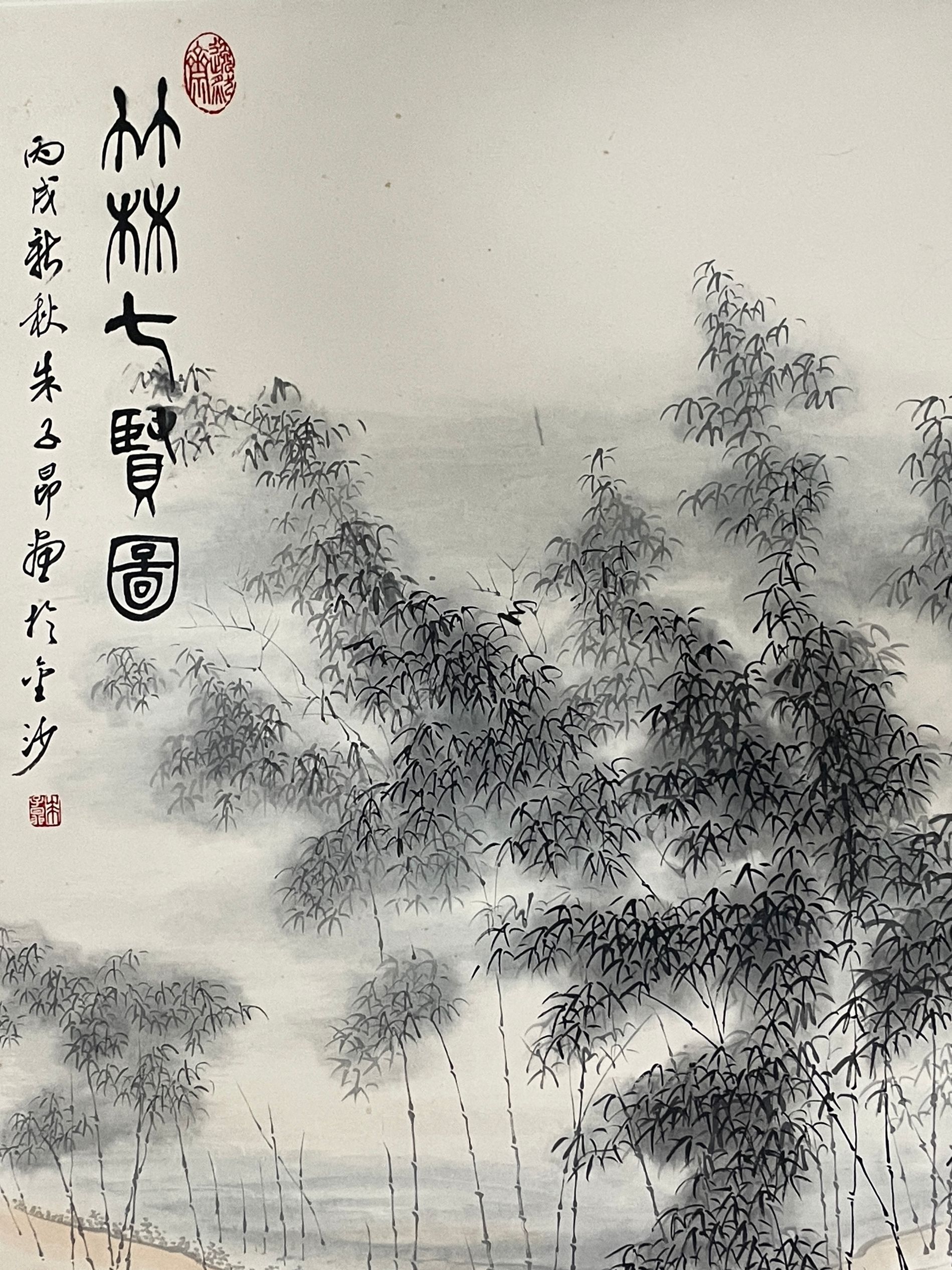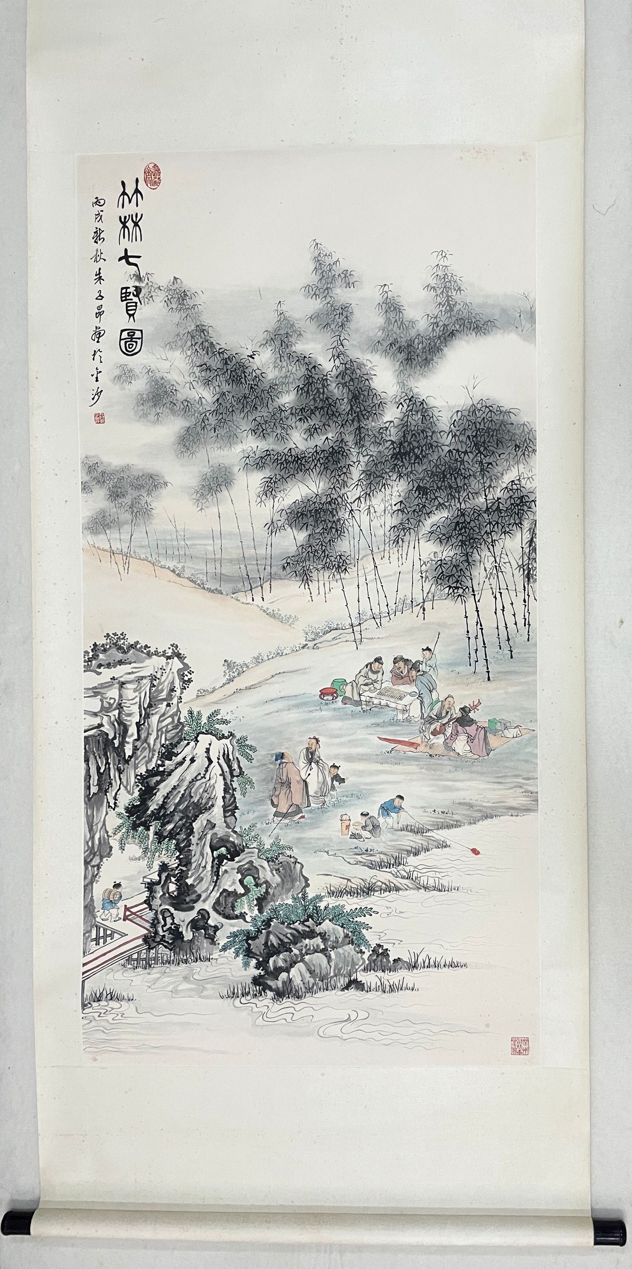 朱子昂《竹林七贤》原裱立轴,四尺整张中堂 |