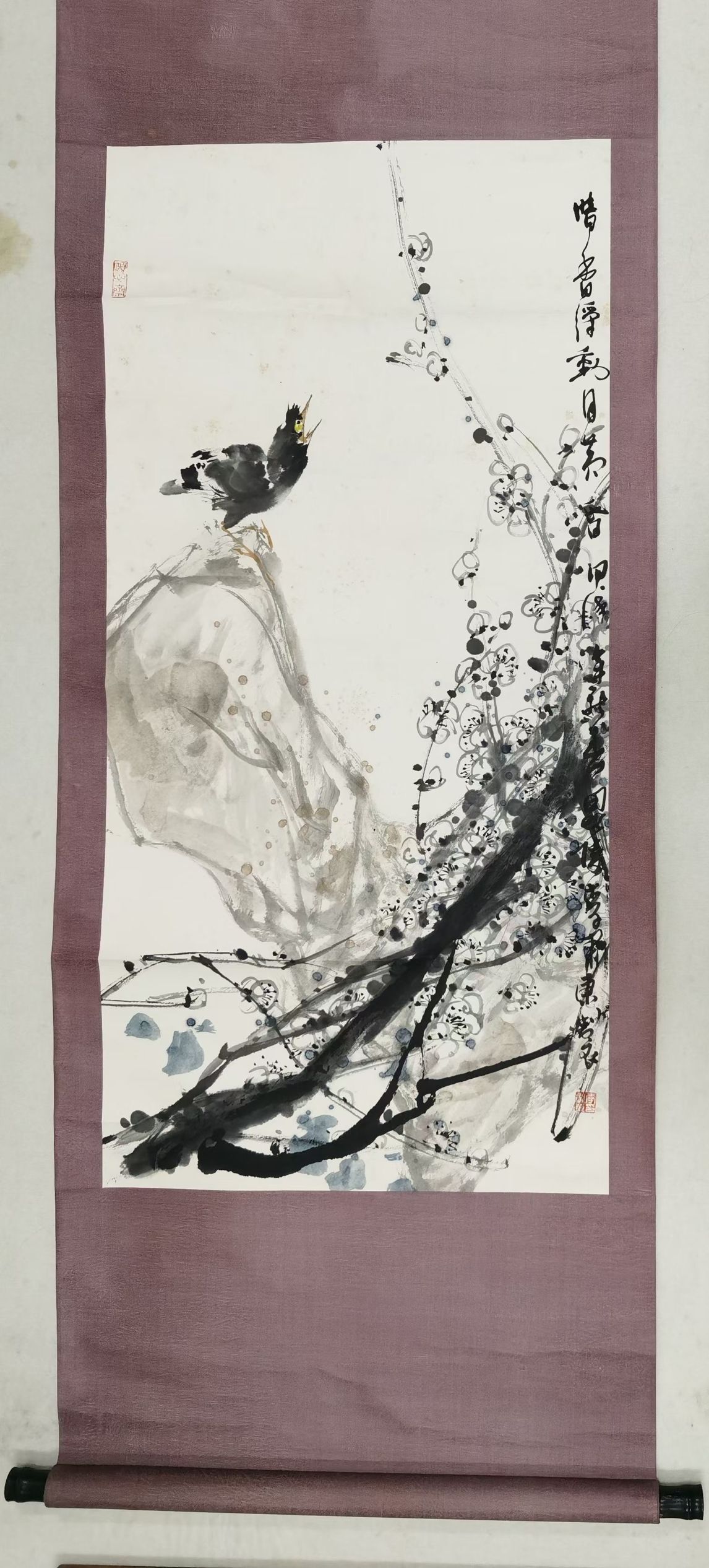 李啸东《花鸟》原裱立轴 |