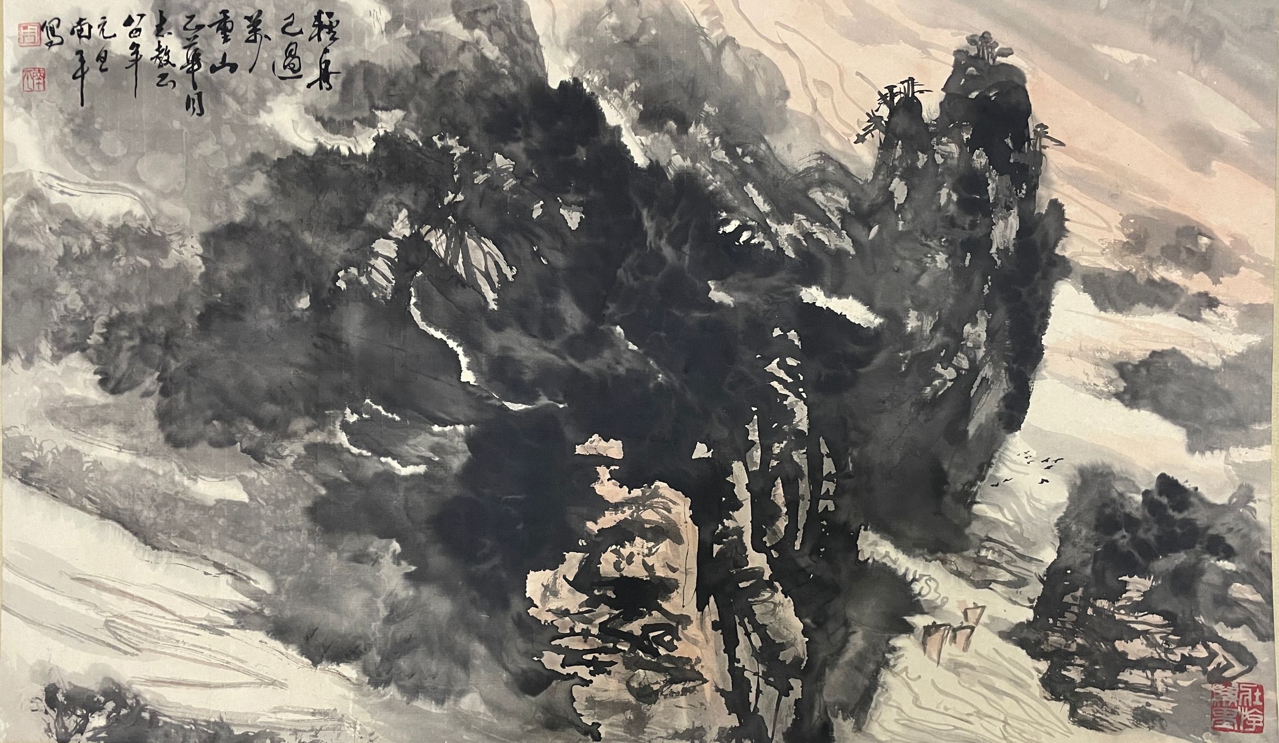 周南平1984年精品《轻舟已过万重山》原裱镜片 |