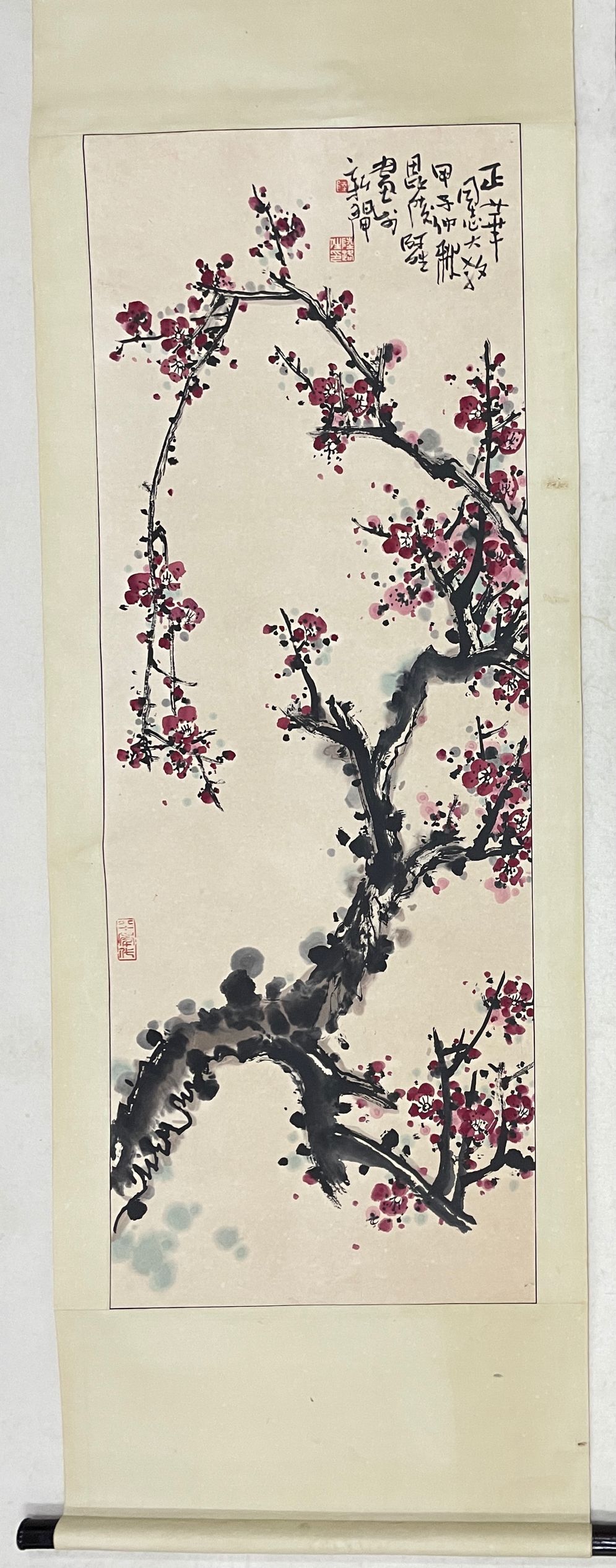 【当代常州籍书画名家~陆路晴老师】1984年精品之作《红梅图》!尺寸136✘50,原裱立轴,品相如图!