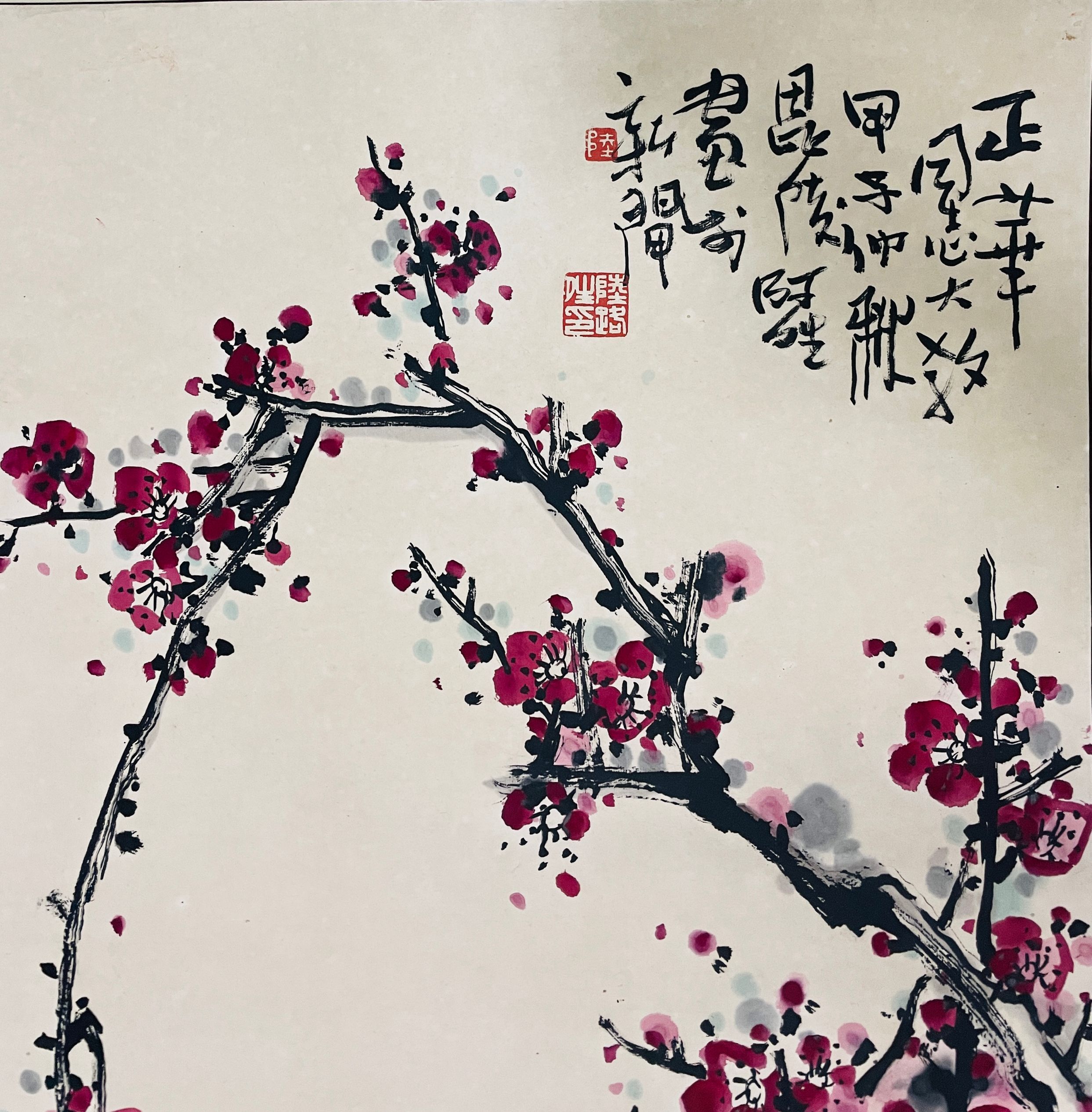 陆路晴1984年精品之作《红梅图》!原裱立轴 |
