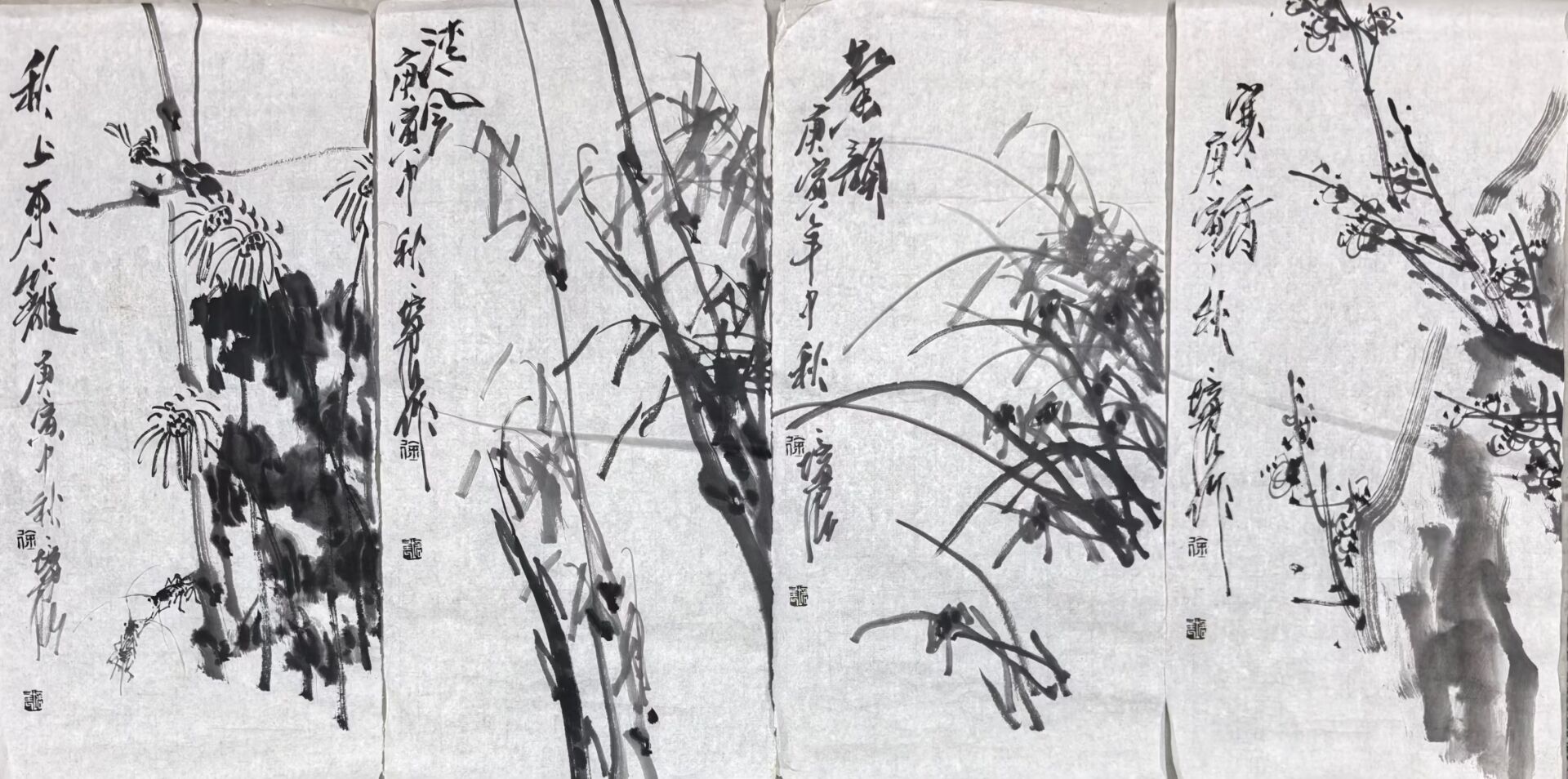 • 徐培晨精品四条屏《梅兰竹菊》,软...