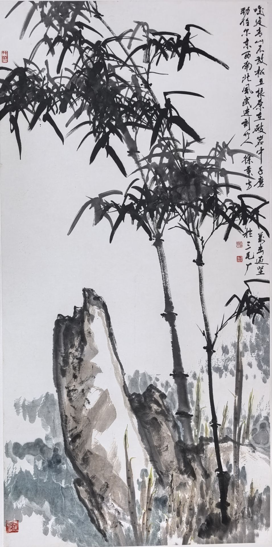 • 徐秉方《竹石图》新裱镜片,四尺整...