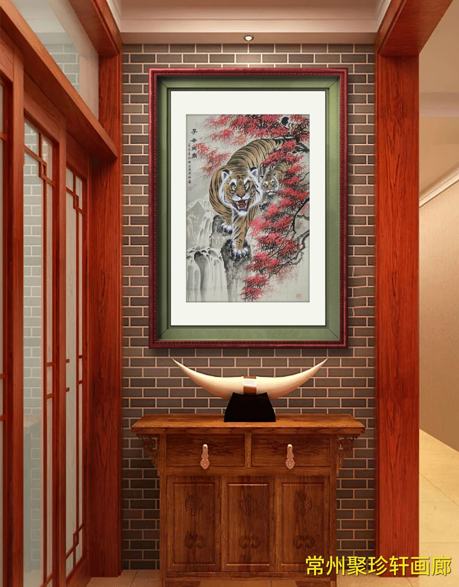 • 陆琨《双虎图》原裱镜片