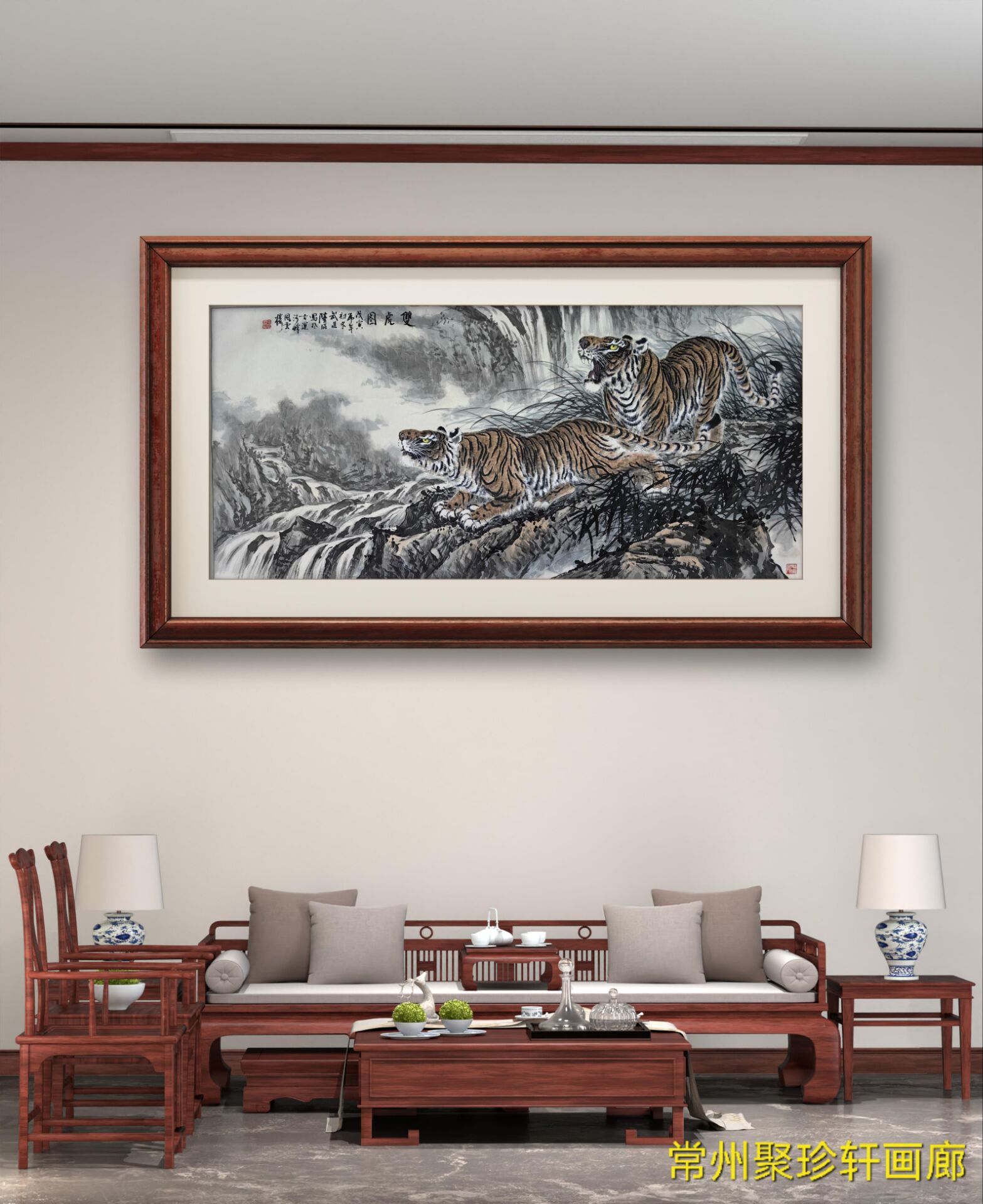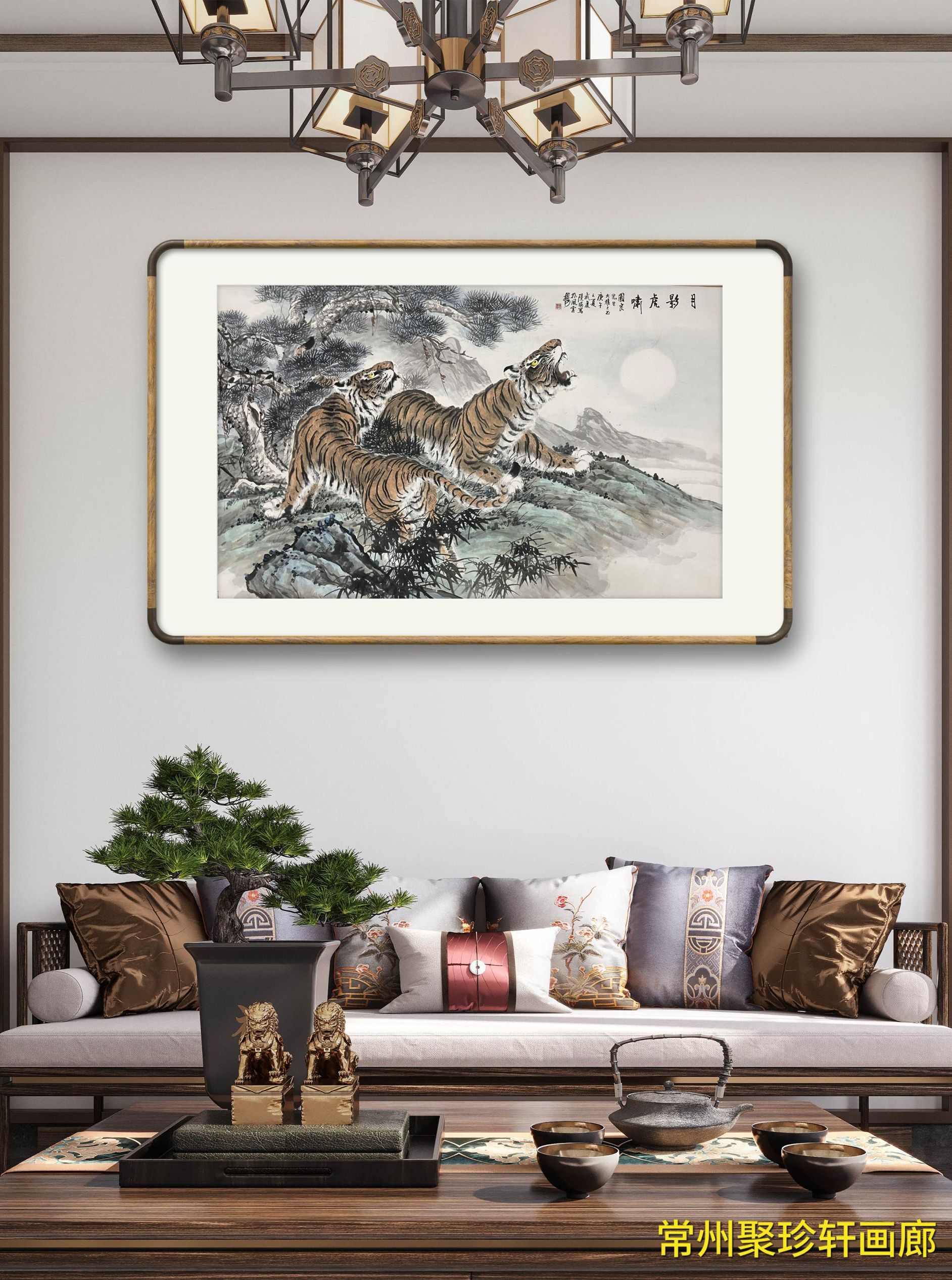 • 陆琨《双虎图》原裱镜片!