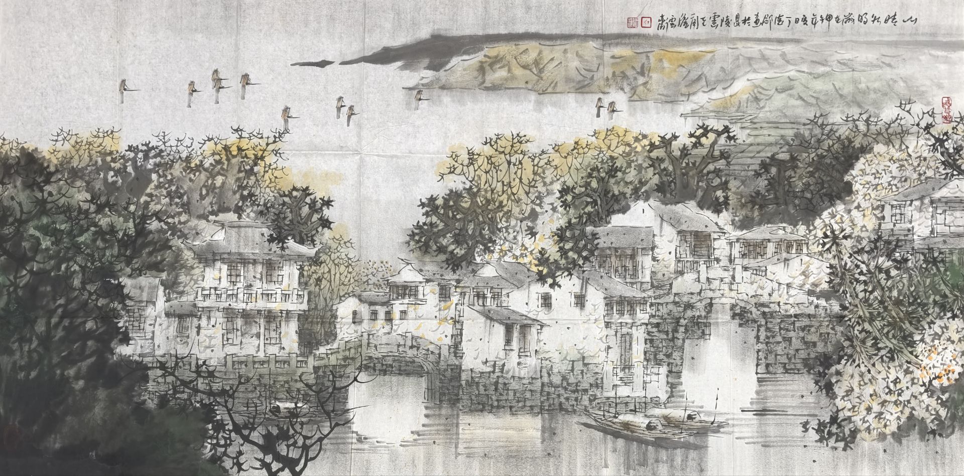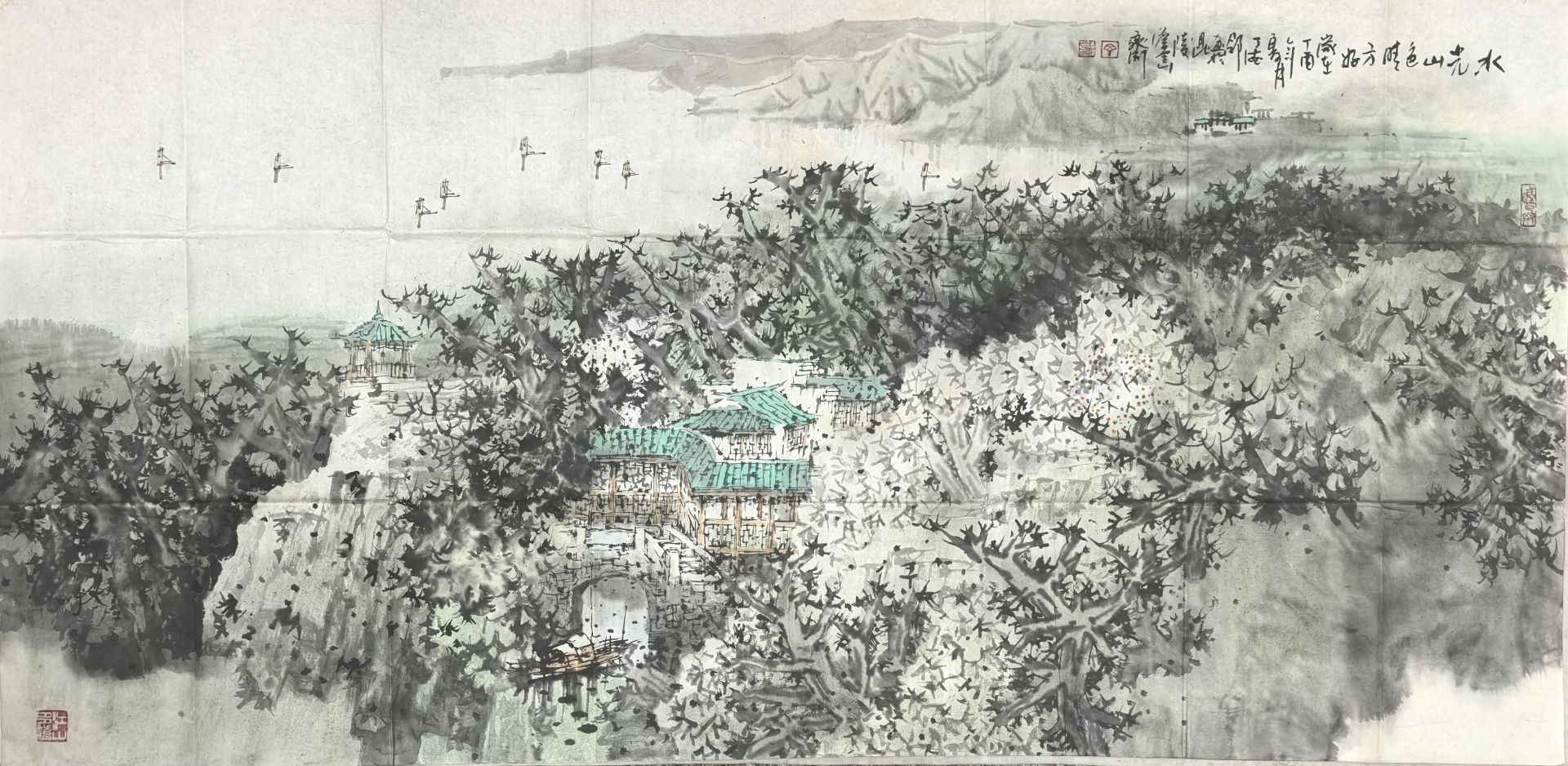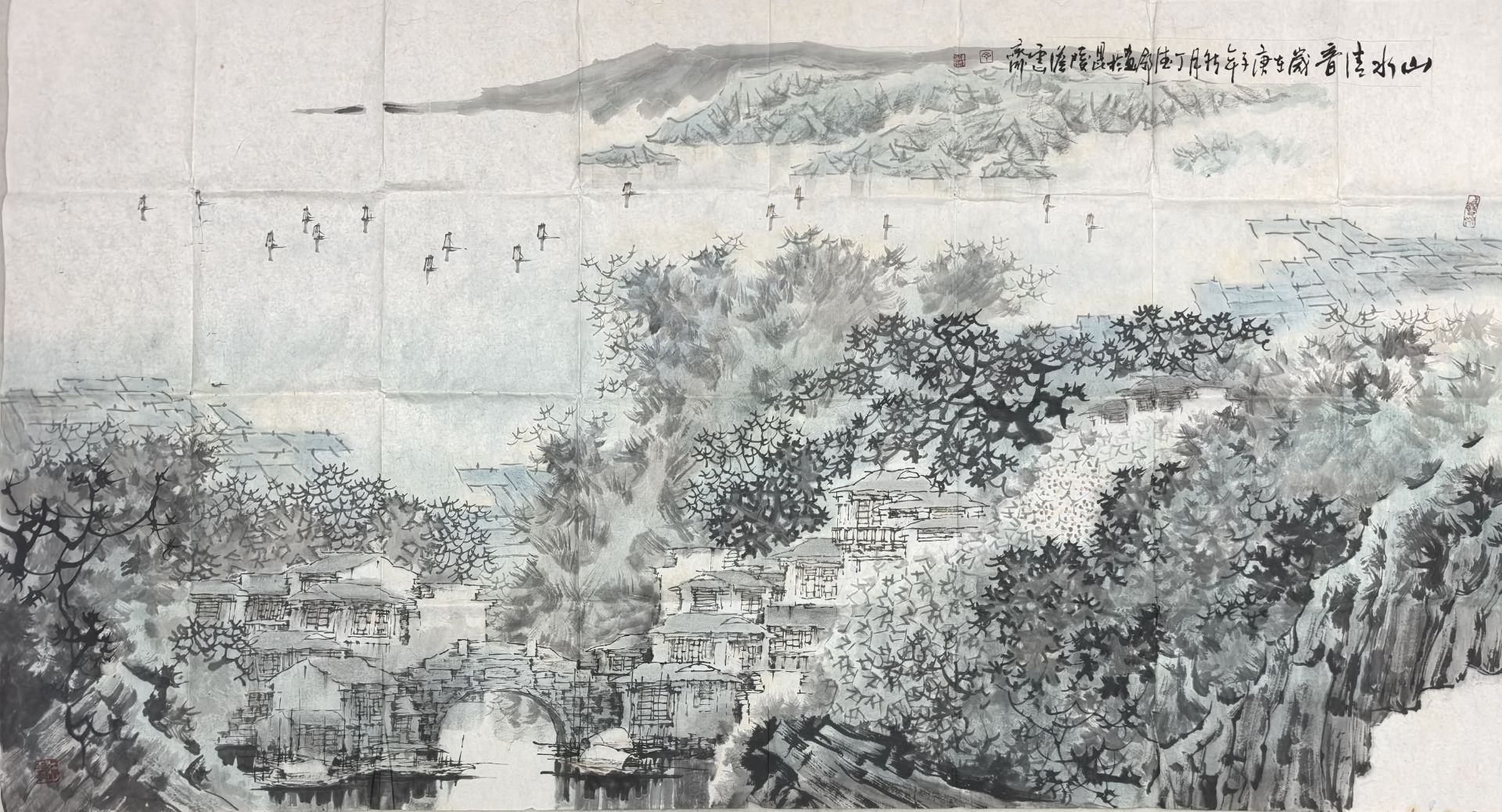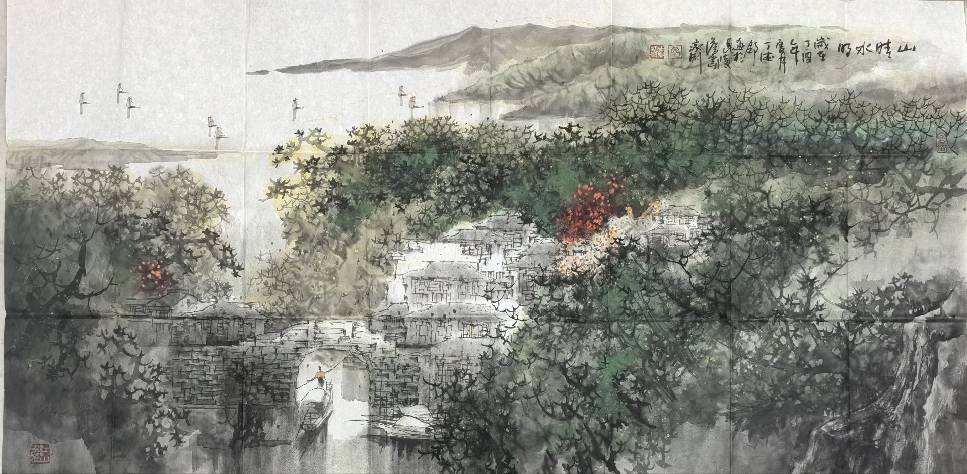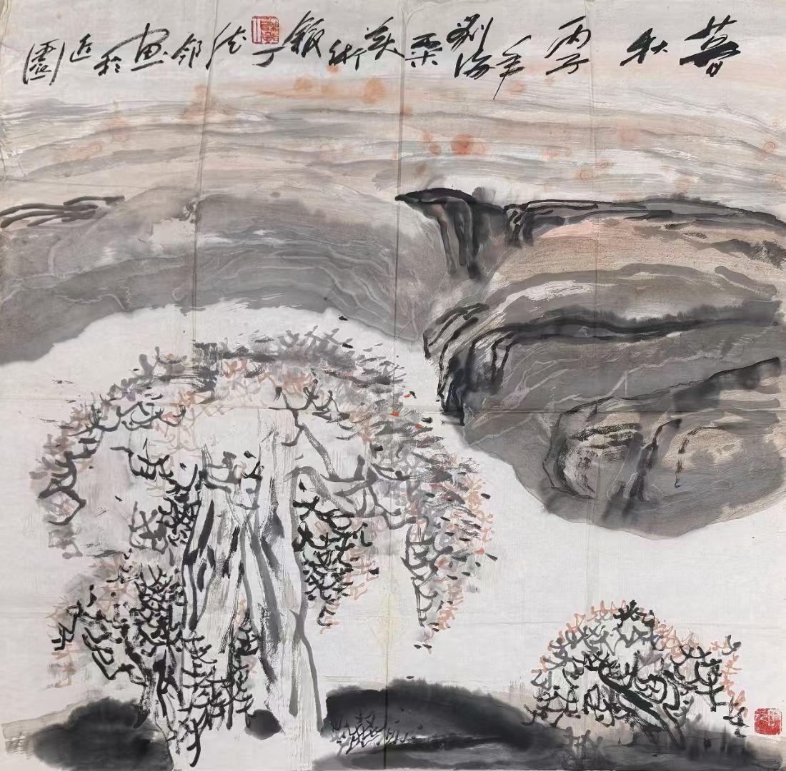 • 丁德邻四尺斗方精品山水,原裱立轴