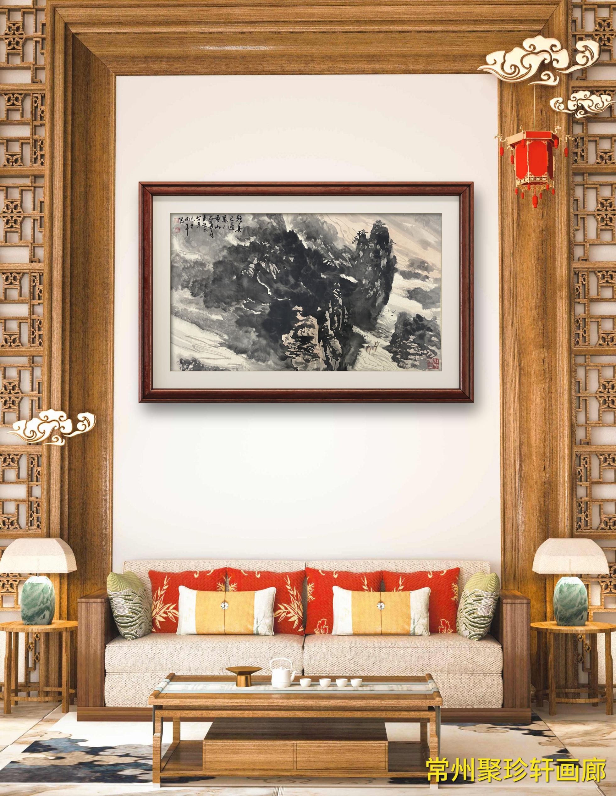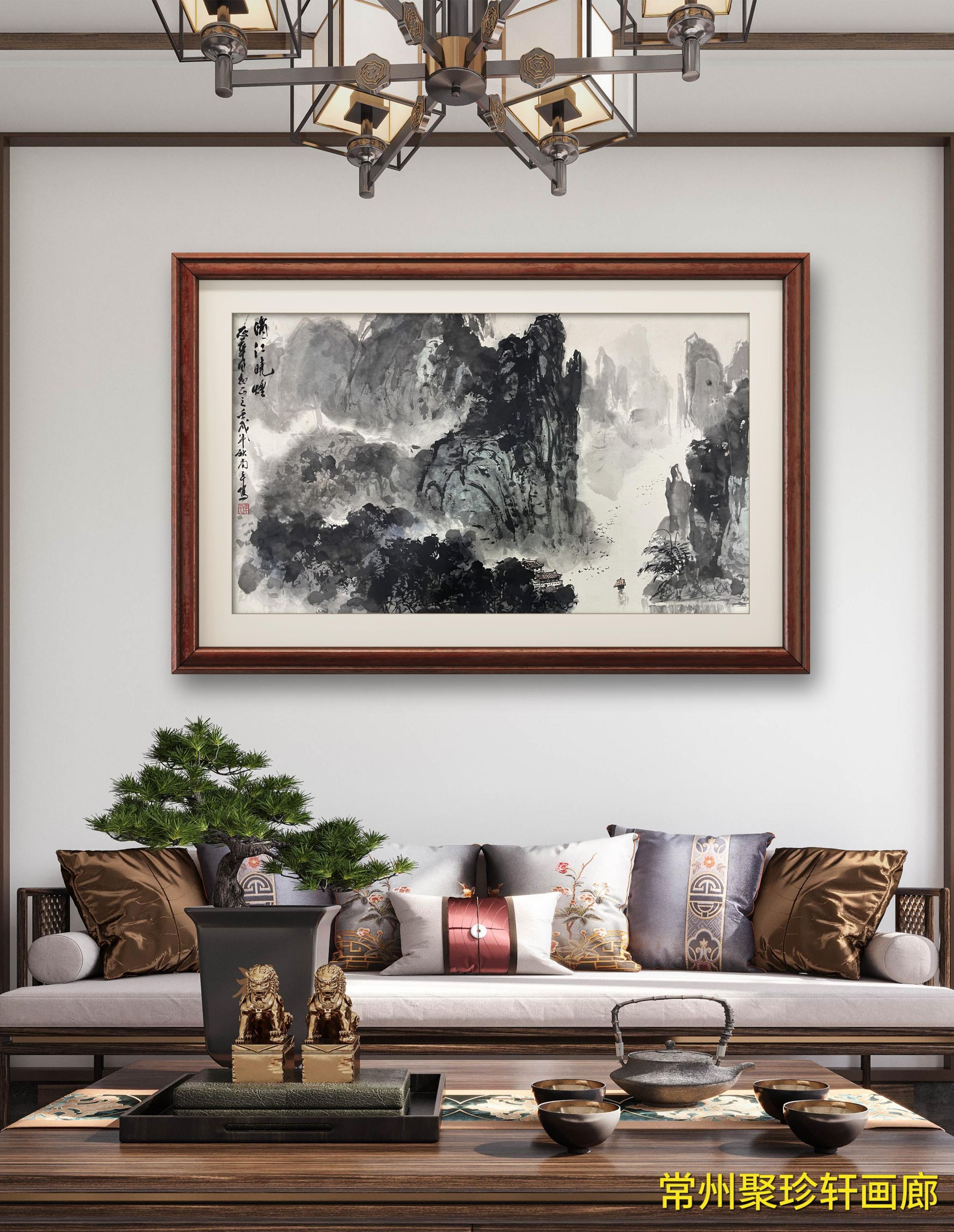 • 周南平《山水》精品之作,原裱镜片