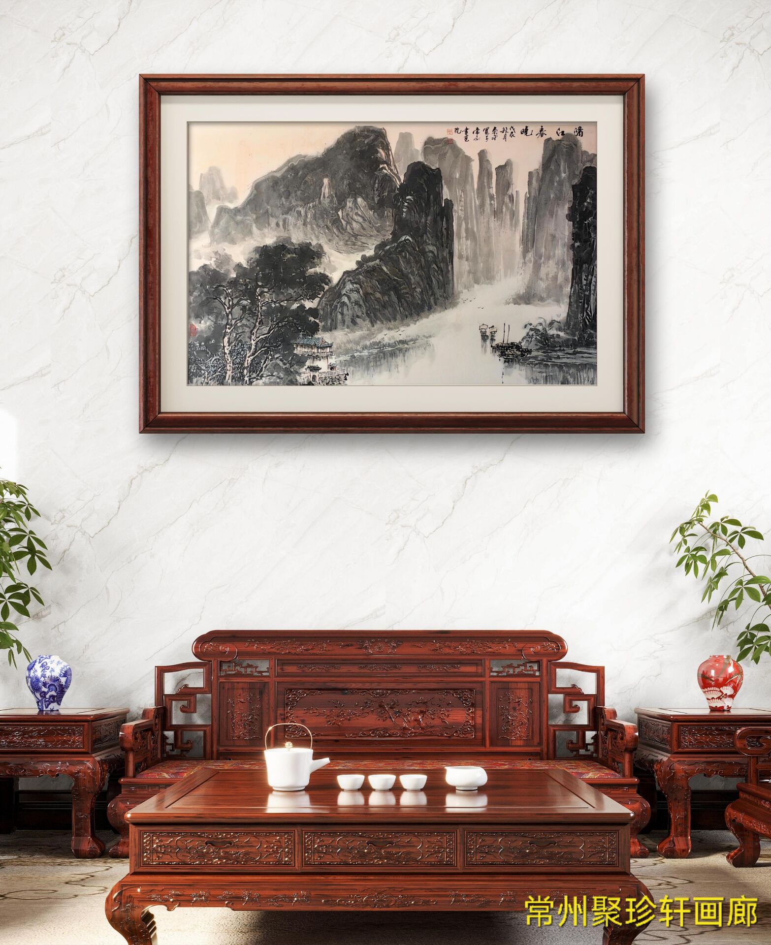 • 周南平《山水》原裱镜片