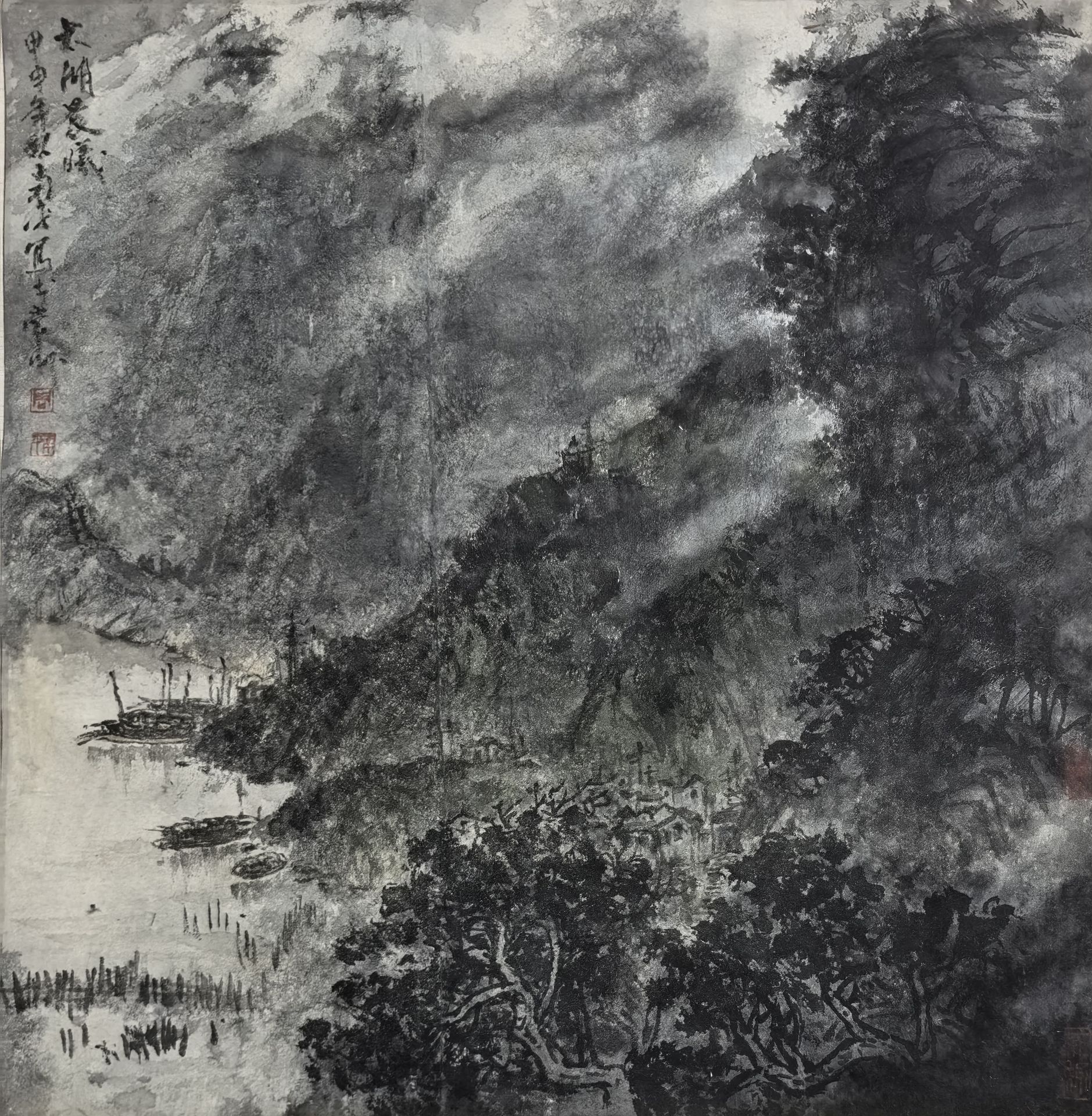 • 周南平《太湖晨曦》,原裱镜片