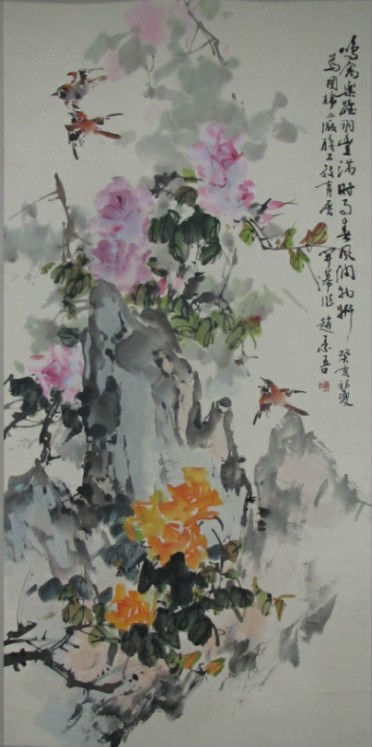 • 赵素吾《花鸟》立轴中堂