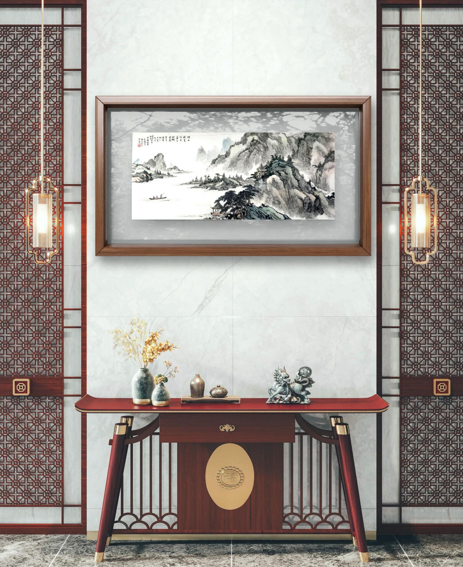 • 伍佩贤《山水》原裱镜片
