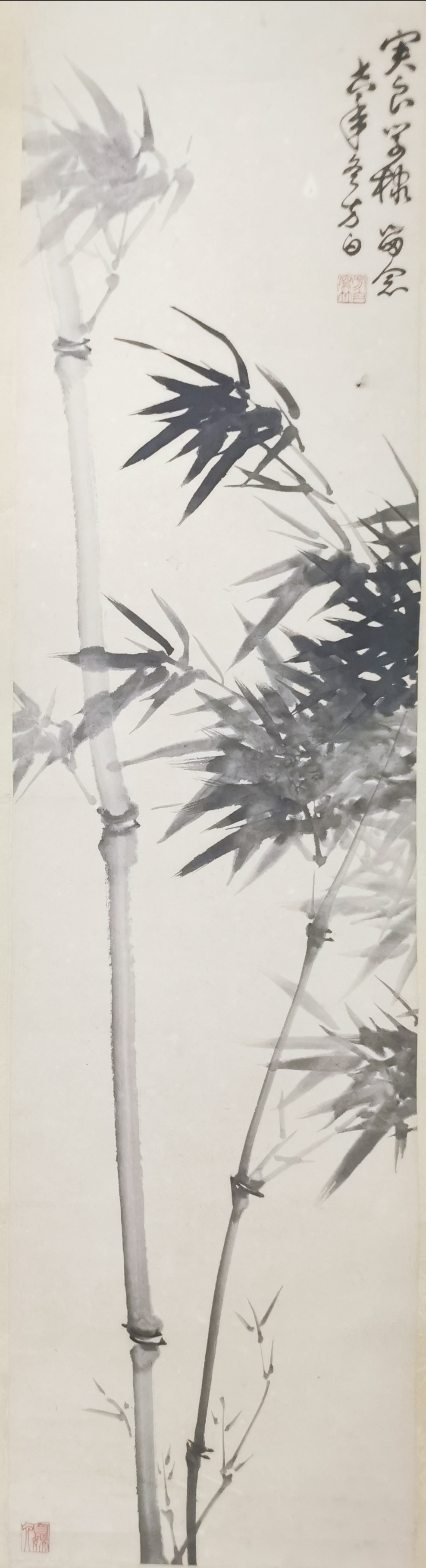 • 周方白《墨竹》原裱立轴!