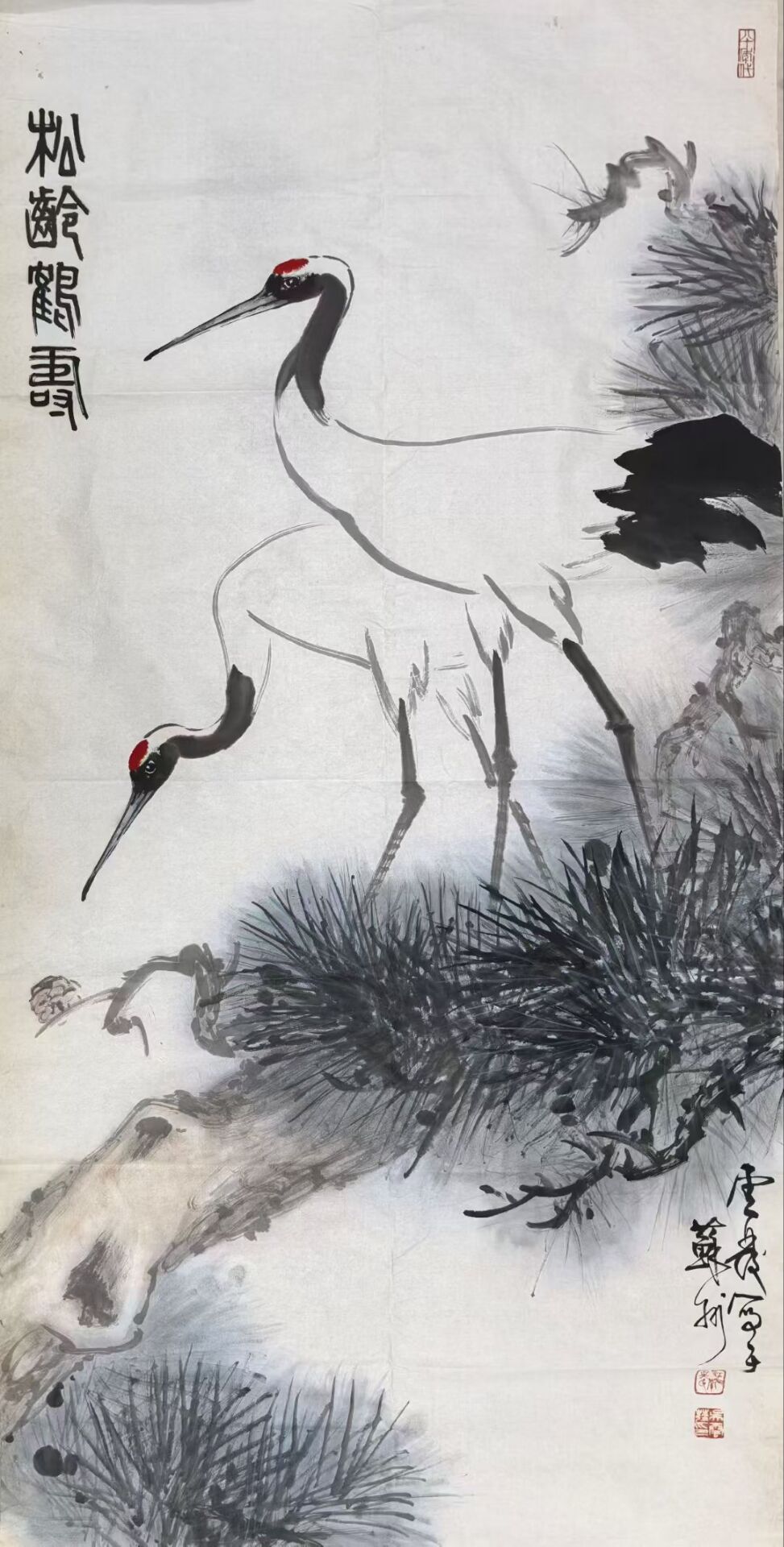 • 吴云发《松龄鹤寿》中堂,软片